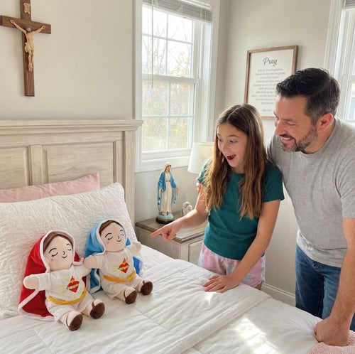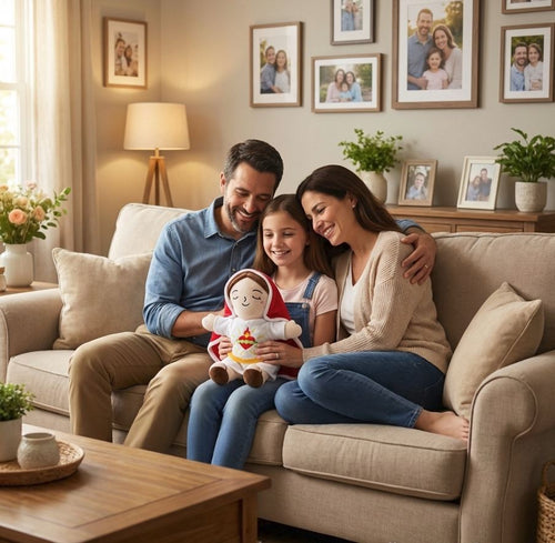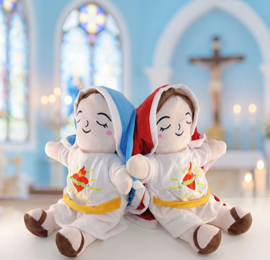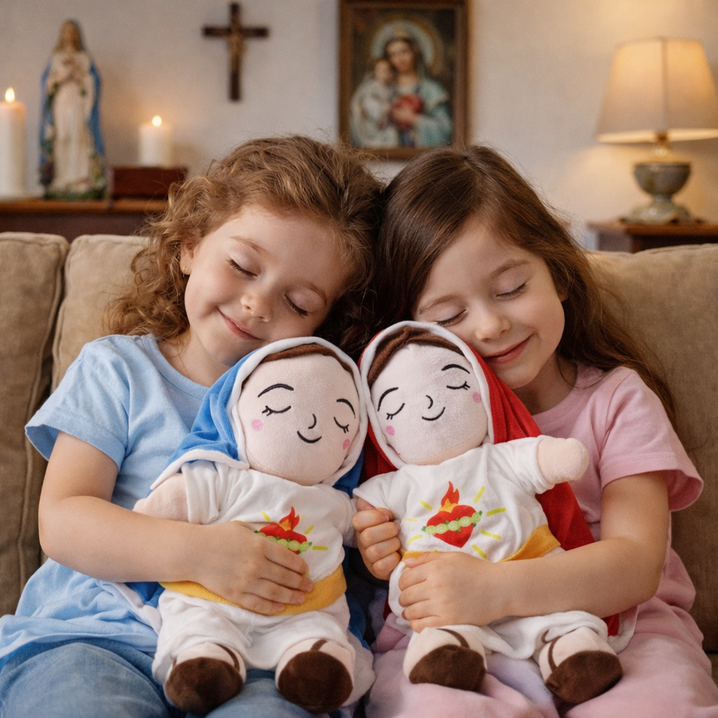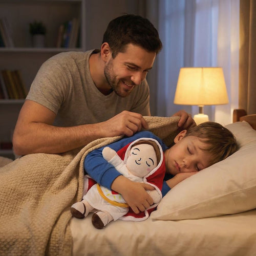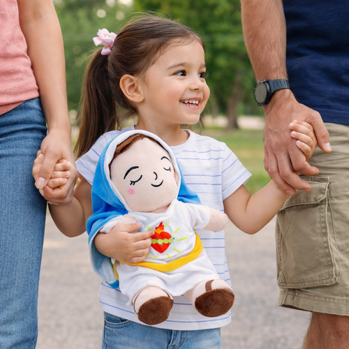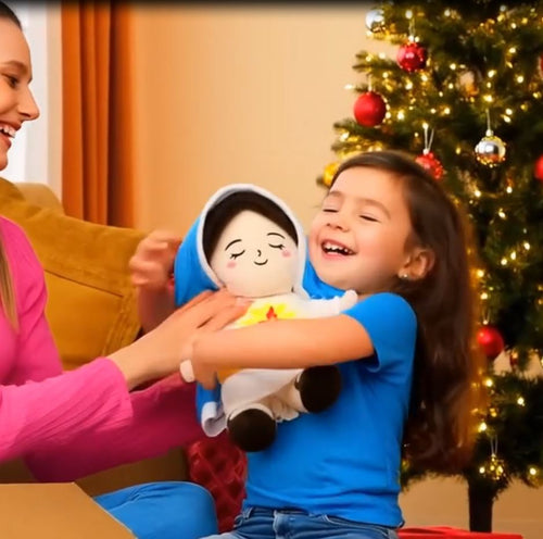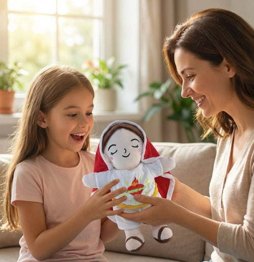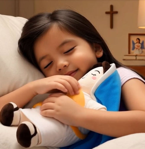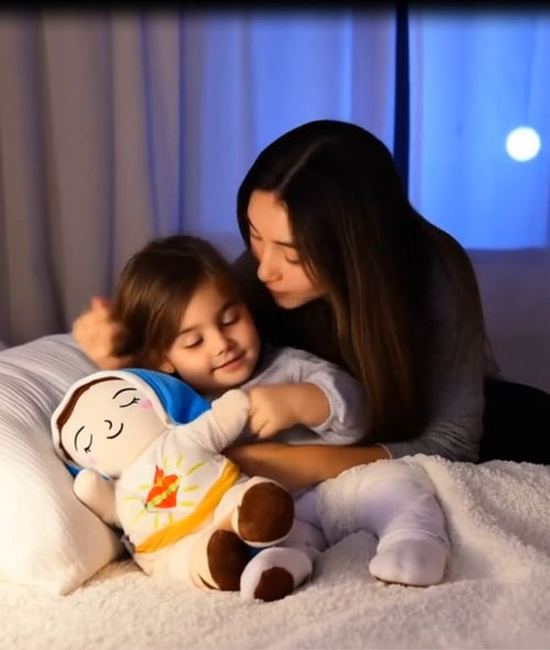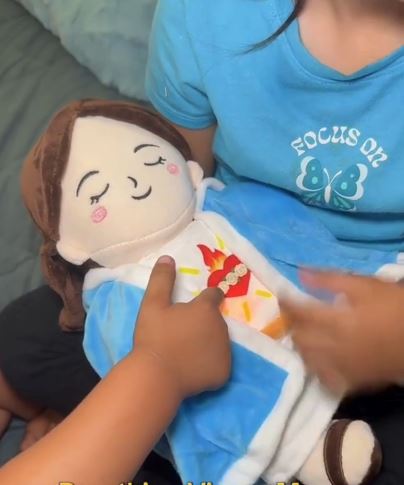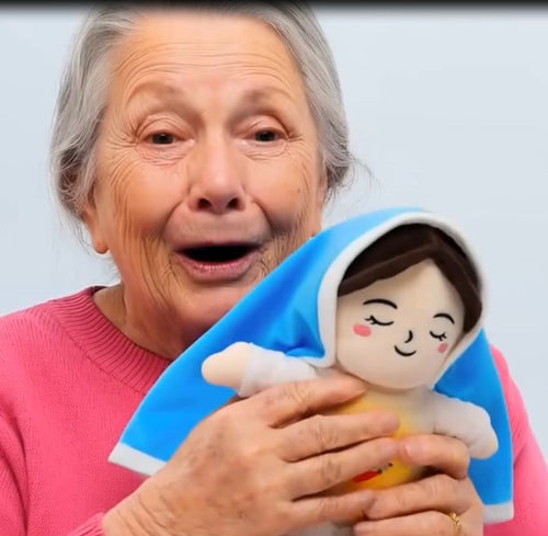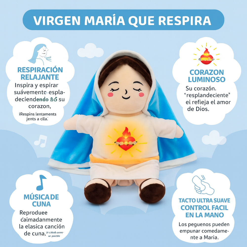 Su respiración simulada y su diseño de la Virgen María lo convierten en un peluche único que transmite calma, ternura y fe.